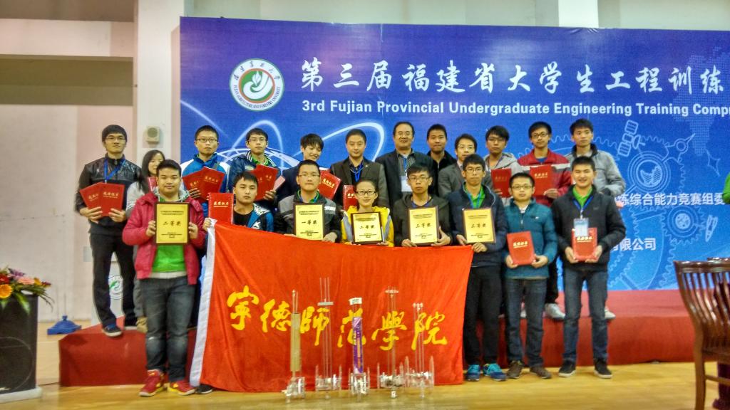 2015年1月1日~2日,第四届全国大学生工程训练综合能力竞赛福建赛区选拔赛暨第三届福建省大学生工程训练综合能力竞赛在福建农林大学举行。竞赛由福建省教育厅主办,福建农林大学承办,福建省金工教学研究会和福建省工程训练教学学会协办。来自全省19所院校的90支队伍参加比赛,参赛队员达400多名。我校物理与电气工程系机械设计制造及其自动化专业的15名同学组成5支队伍参加竞赛。经过两天的激烈角逐,我校代表队取得一等奖1项、二等奖2项、三等奖2项的优异成绩。总成绩列所有参赛学校第7名,在新建本科院校中名列前茅。同时,我校还荣获优秀组织奖。