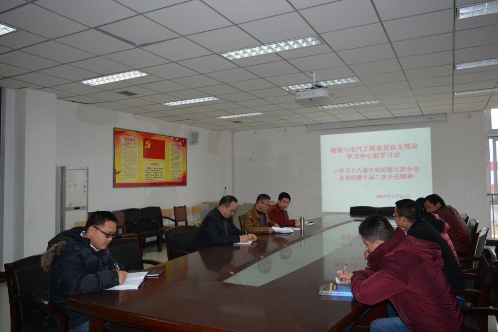 2017年2月21日下午,我系党总支在系会议室举行理论学习中心组(扩大)学习会,专题学习十八届中央纪委七次全会精神。系主任神会存、党总支书记郑乃清、党总支副书记王楠楠、党总支委员、各党支部书记等参加会议。